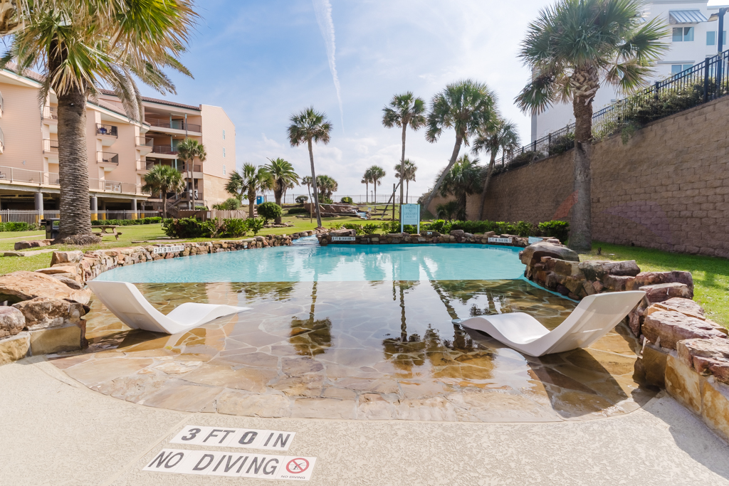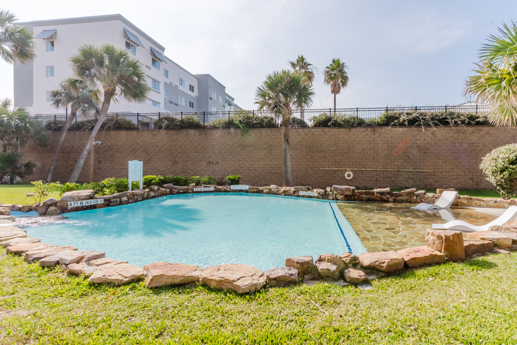A truly unique and truly amazing condo located at the Maravilla complex – where close to $2M was recently spent updating and upgrading the aquatic facilities to be the best on Galveston island. Three pools and 2 hot tubs. From the balconies of this condo you can see 2 of the pools – one being one of the largest in all of Galveston with 330,000 gallons of water and a palm tree that literally grows out of the center island of the pool – tanning ledges, awesome lounge chairs, and a palappa should you need to get some shade. The second west pool is zero entry – easy for the littles to get in and out, and another fantastic tanning option. Between these two pools you’ll find one of the two hot tubs. On the east side of the complex you’ll find the heated pool with a new huge hot tub. This option offers a splash pad for the littles as well – many come for the beaches but never leave because of the fantastic facilities that the Maravilla complex has to offer.
