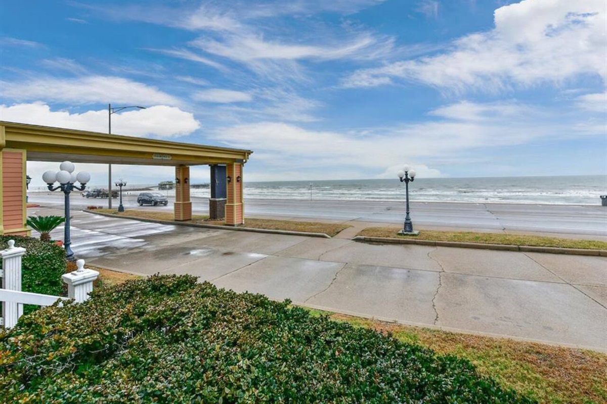 The Victorian complex is located across from Babe’s Beach on Galveston’s Seawall – protected by traffic signals at both corners so you can safely walk across to the beach. There’s a huge big box store that starts with a W next door for all your shopping needs, and eateries in walking distance for sandwiches and BBQ.
